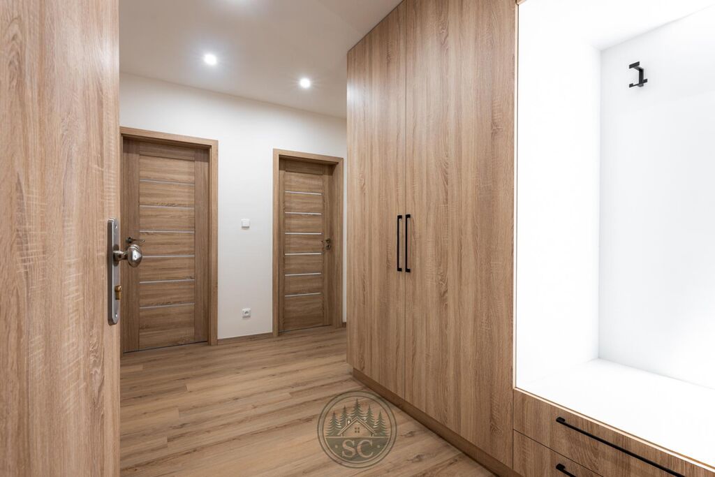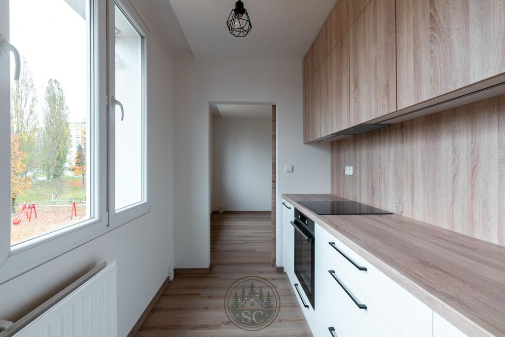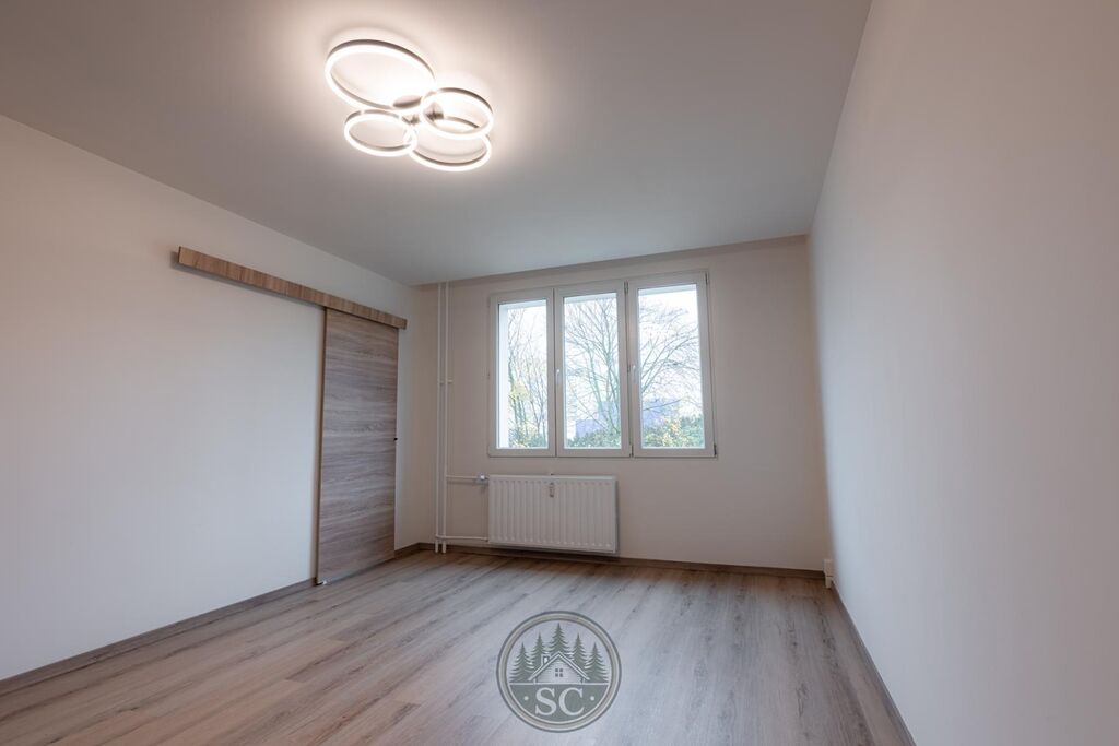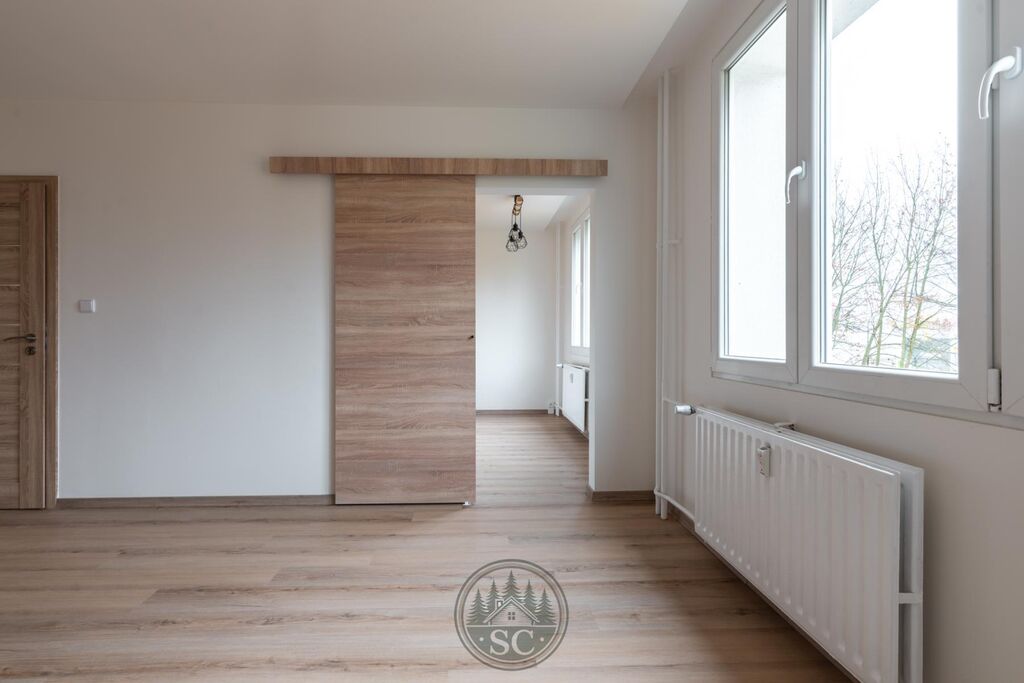 V celém bytě proběhla kompletní nivelace podlah a byl položen kvalitní vinyl, který sjednocuje celý prostor. Samozřejmostí jsou nové dveře a nové rozvody elektřiny a vody.