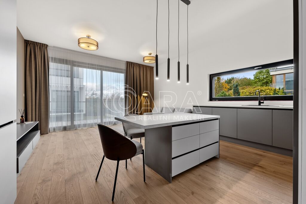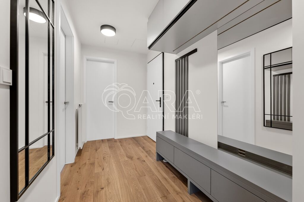 Byt je vybaven stropním vytápěním a chlazením, centrálním větráním s rekuperací, venkovními žaluziemi a chytrou domácností, kterou lze ovládat na dálku. Kvalitní dřevěné podlahy, vestavěný nábytek a prvotřídní spotřebiče tvoří harmonický celek, který uspokojí i ty nejnáročnější nájemce.