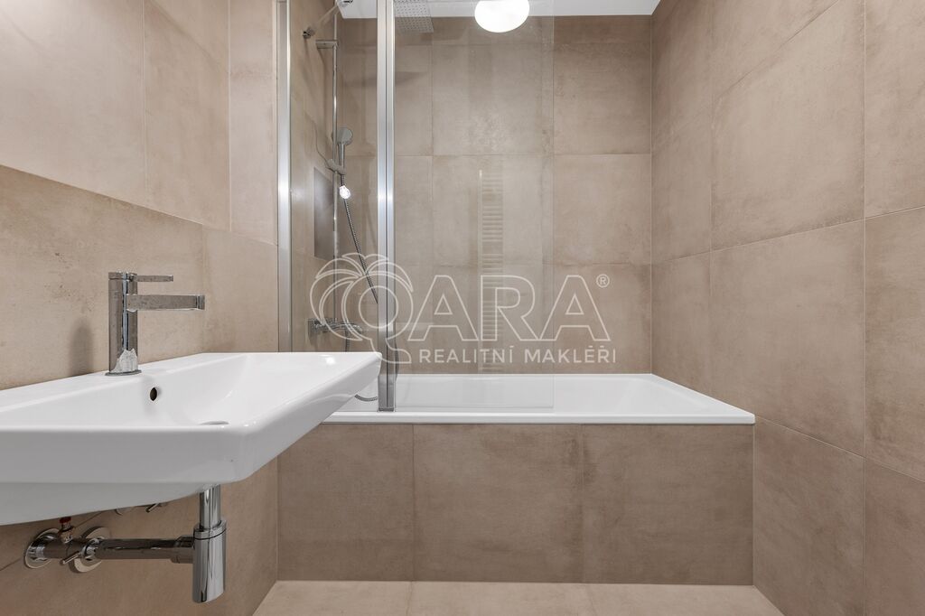 Ložnice je vybavena manželskou postelí, vestavěnými skříněmi a má rovněž přístup na balkon. Koupelna nabízí vanu, umyvadlo, toaletu a úložné prostory v podobě skřinky nad a pod umyvadlem, vstupní chodba pak disponuje vestavěnými skříněmi s podsvícením. Veškeré vybavení z fotografií je součástí tohoto dlouhodobého pronájmu.