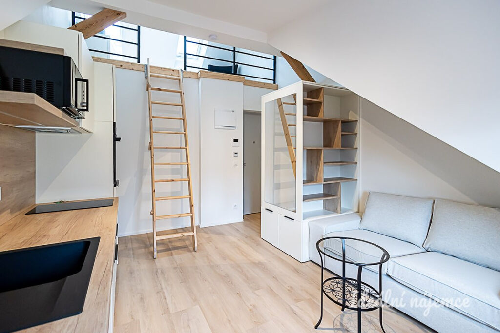K dlouhodobému podnájmu nabízíme světlý a útulný byt 1+kk s loftem v klidné a atraktivní lokalitě Praha 10 – Záběhlice.