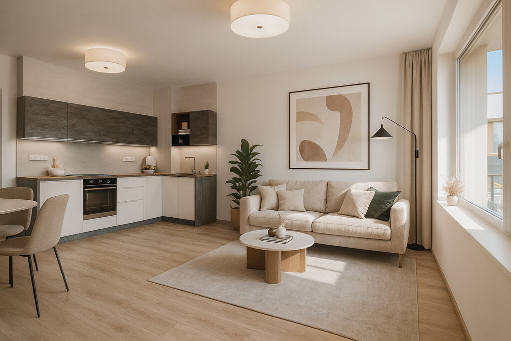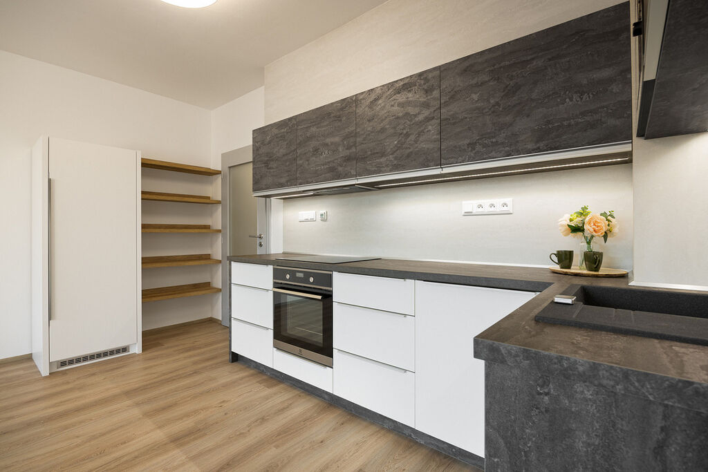 Byt je překvapivě prostorný a dokonale funkční – orientovaný na jihozápad, díky čemuž je celý den prosvětlený.