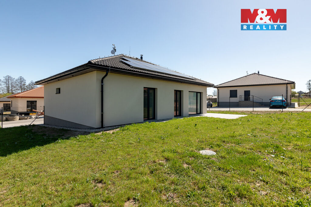 Nabízíme k prodeji moderní novostavbu rodinného domu typu bungalov o dispozici 4+kk v atraktivní lokalitě Rychvald. Zděný dům o užitné ploše 114 m² je navržen s důrazem na komfortní a úsporné bydlení. Dominantou domu je prostorný obývací pokoj s kuchyňským koutem vybaveným kvalitní kuchyní značky SIKORA. V celém domě je instalováno vodní podlahové vytápění, které zajišťuje příjemné teplo v každém ročním období. O ohřev vody se stará elektrický boiler, vytápění je řešeno elektrickým kotlem a pro milovníky atmosféry je k dispozici také krb na tuhá paliva. Dům je vybaven rekuperací vzduchu pro zdravé a úsporné větrání, na střeše jsou instalovány solární panely pro výrobu vlastní elektřiny (fotovoltaika). Všechny technologie jsou řízeny moderním chytrým systémem LOXONE, který umožňuje pohodlné ovládání domácnosti. Nemovitost je napojena na centrální kanalizaci. Klidná lokalita Rychvald nabízí výbornou dostupnost do Ostravy i okolních měst, v blízkosti je veškerá občanská vybavenost.