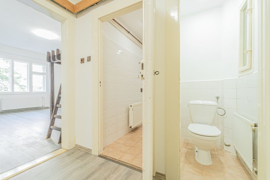 Dispozice bytu zahrnuje prostornou předsíň s dostatkem místa pro úložné prostory, samostatnou koupelnu a WC, kuchyň s prostorem pro jídelní stůl či obývací část a další pokoj, který lze využít jako ložnici s pracovnou.