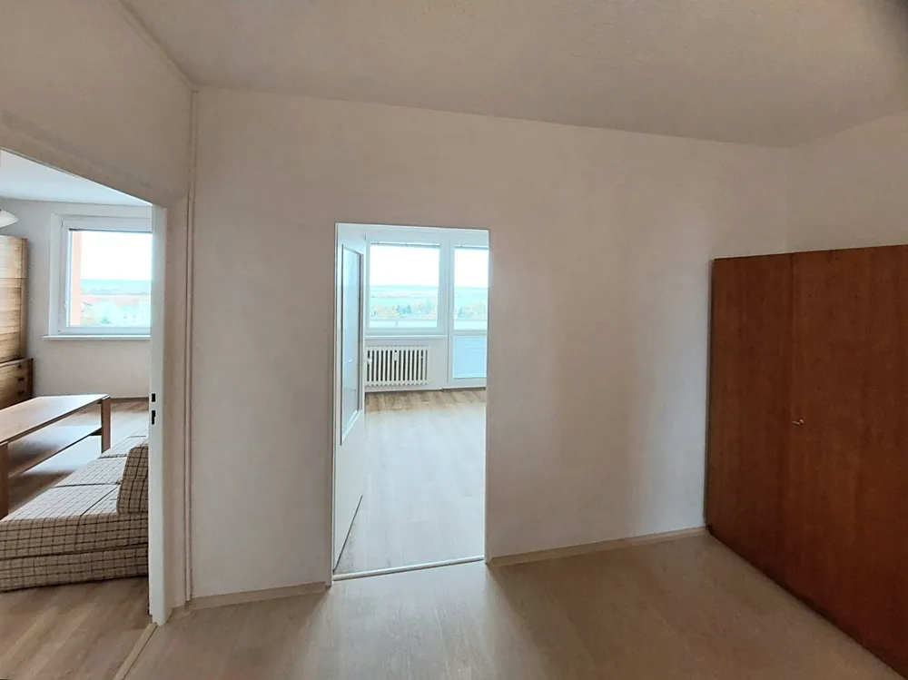 Dispozice – velká kuchyně 18 m², dva neprůchozí pokoje - obývací pokoj 17 m² a ložnice 13m² se vstupem na balkon 4 m² s krásným výhledem, prostorná předsíň, koupelna se sprchovým koutem společně s WC, k dispozici sklep.