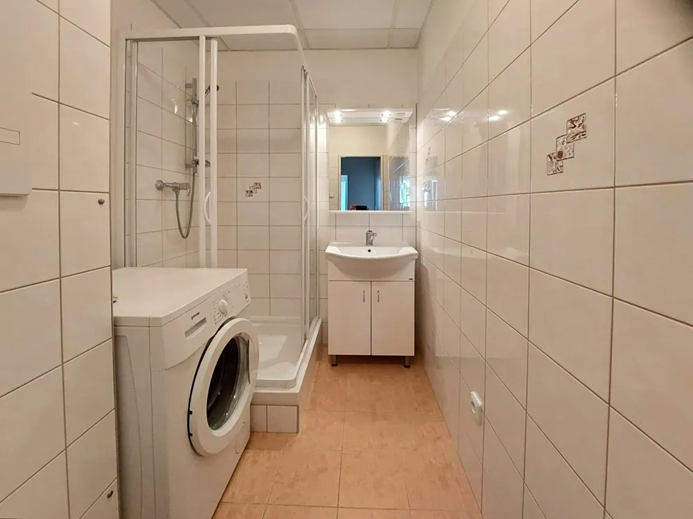 Bytová jednotka se nabízí částečně zařízená (viz. fotografie) - je zde kuchyňská linka včetně spotřebičů (elektrický sporák, digestoř, lednice, mrazák, mikrovlnná trouba), policové díly, v OP pohovka, obývací stěna, konferenční stůl, šatní skříně, v koupelně pračka a toaletní skříňka pod umyvadlem.