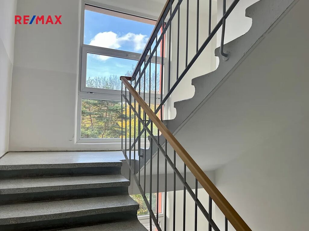 Byt se skládá ze dvou neprůchozích pokojů (u jednoho z nich je balkon), dále z kuchyně, koupelny s rohovou vanou a samostatného WC. Okna jsou plastová, na podlahách v pokojích jsou dřevěné parkety. Kuchyňská linka je vybavena plynovou varnou deskou, elektrickou troubou, pračkou a lednicí. V kuchyni je jídelní barový stolek se dvěma židlemi. Jinak je byt nevybavený. K bytu náleží sklepní kóje v suterénu domu.