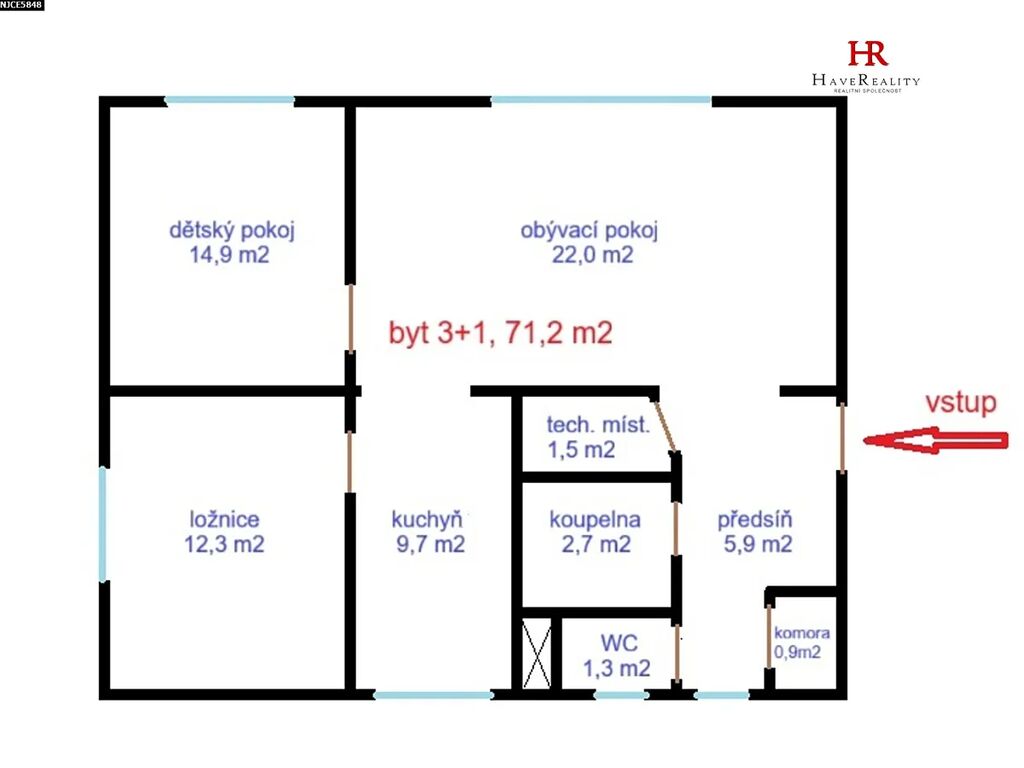 Nabízíme k prodeji zrekonstruovanou, bytovou jednotku 3+1 nacházející se v cihlovém domě v blízkosti centra města Benešova u Prahy, ulice Na Spořilově 1140. Tato bytová jednotka v osobním vlastnictví o dispozici 3+1 a podlahové ploše bytu 71,2 m2 (bez sklepa, 87,1 m2 se sklepem), se nachází ve 2. podlaží z celkových 3. podlaží Dispozice: obývací pokoj 22,0 m2, kuchyň 9,7 m2, předsíň 5,9 m2, koupelna s vanou umyvadlem 2,7 m2, technická místnost s místem na pračku 1,5 m2, ložnice 12,3 m2, dětský pokoj 14,9 m2, samostatné WC 1,3 m2, komora 0,9 m2, sklep 15,9 m2. Okna – plastová. Podlahy – vinylová podlaha, dlažba. Interiérové dveře s obložkou. Topení – ústředí, vlastní elektrokotel v technické místnosti. Ohřev vody – elektrický bojler umístěný také v tech. místnosti. Do bytu je přiveden TV signál a optický telekomunikační kabel. K bytu náleží prostorný sklep o velikosti 15,9 m2 (není zahrnuto do celkové plochy bytu), umístěný v suterénu domu. Možno využívat společnou sušárnu. Tento bytový dům s 5 byty je umístěn ve velice pěkné a klidné lokalitě v blízkosti centra města Benešov (Spořilov I.). Byt prošel kompletní rekonstrukcí. PENB – třída G – není dodán. Město Benešov se nachází ve Středočeském kraji, cca 40 km jihovýchodně od Prahy. Má velice dobrou dopravní obslužnost a dostupnost do Prahy (vlak, autobus). V blízkém okolí domu se nachází veškerá občanská vybavenost. Za domem je zeleň a dětské hřiště. V okolí Benešova naleznete velké množství památek, zajímavostí, kulturního a sportovního vyžití. Pro sjednání nezávazné prohlídky nás prosím kontaktujte na uvedených číslech. V případě zájmu Vám zprostředkujeme sjednání hypotéky. Volné od 1. 1.2026.