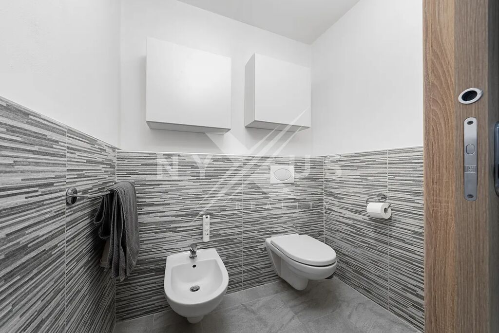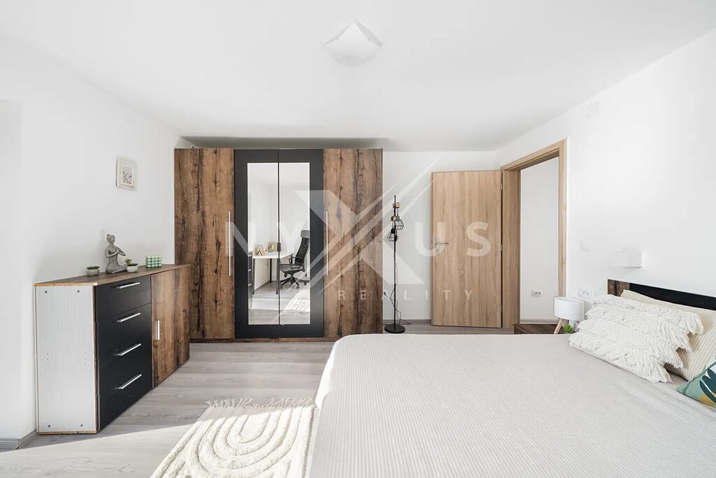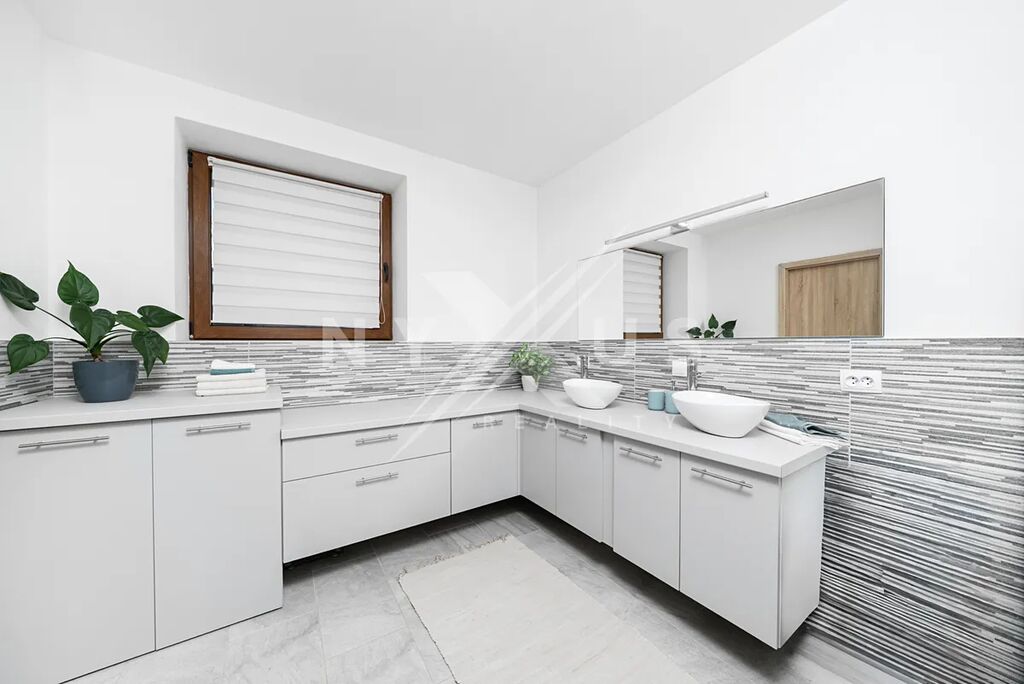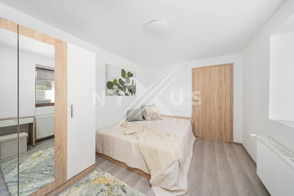 Dům disponuje celkem třemi ložnicemi, z nichž jedna je připravena pro vytvoření wellness zóny – můžete si tu snadno vybudovat vlastní oázu klidu se saunou či vířivkou. Koupelna je prostorná, doplněná o samostatné WC.
