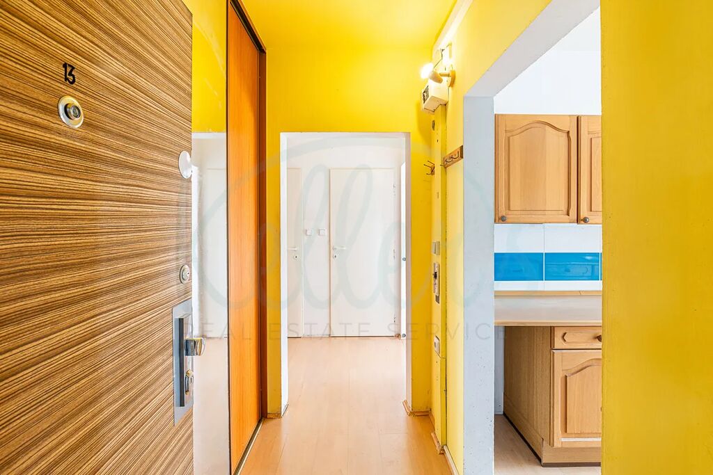 Dispozici bytu tvoří předsíň s prostorem pro vestavěné skříně, samostatná kuchyň, hlavní pokoj se vstupem na zasklenou, jižně orientovanou lodžii, koupelna s vanou a oddělené WC. Byt je v původním stavu – vhodný k rekonstrukci. K bytu náleží sklep.