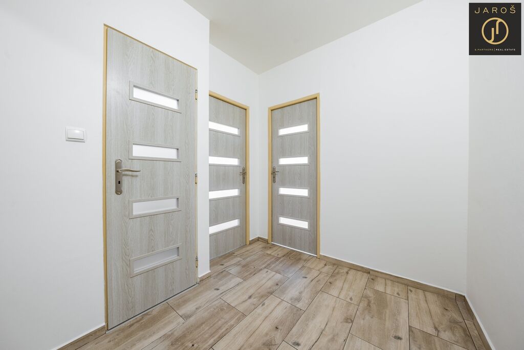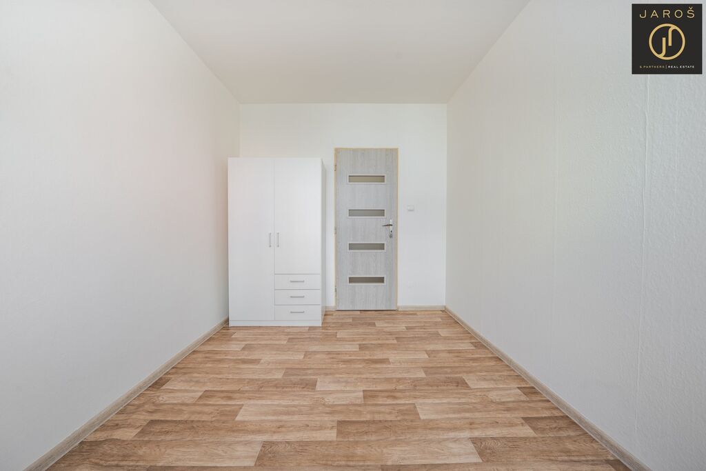 Byt je částečně vybaven – v předsíni je prostorná vestavěná skříň, v ložnici další šatní skříň a v kuchyni moderní linka s elektrickou troubou a indukční varnou deskou.