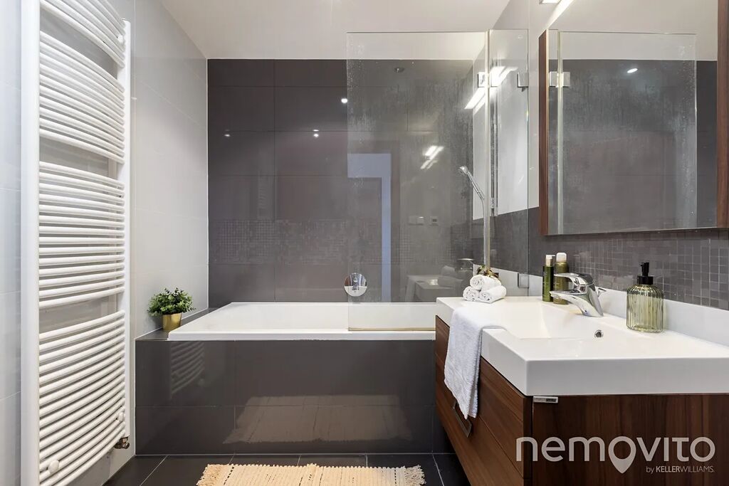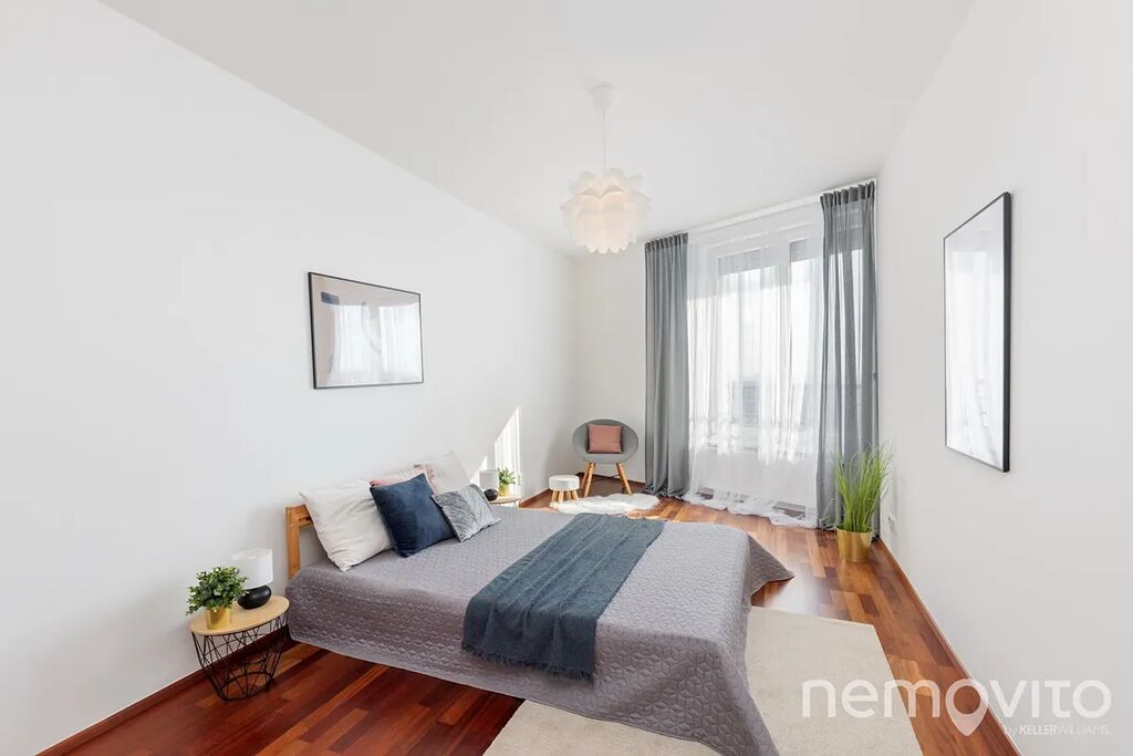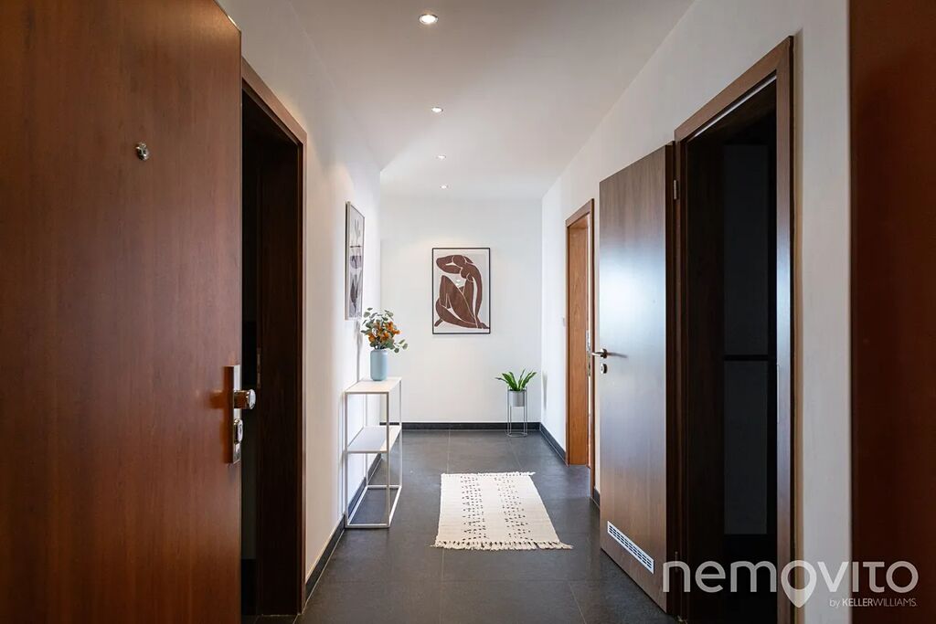 Byt s fantastickým výhledem na Prokopské údolí v sedmnáctém podlaží budovy Prague Towers. Velkorysá plocha 93 m2 (byt + sklep) je pro dispozici 3+kk skutečně neobvyklá, přičemž příslušenství doplňuje také balkon (4,9 m2, není započten do plochy), dvě garážová stání za sebou a u nich umístěný sklep (4,7 m2). Byl byl dokončen v roce 2011, nicméně do dnes byl užíván pouze dva roky, a je tak ve špičkovém stavu a prakticky bez známek používání.