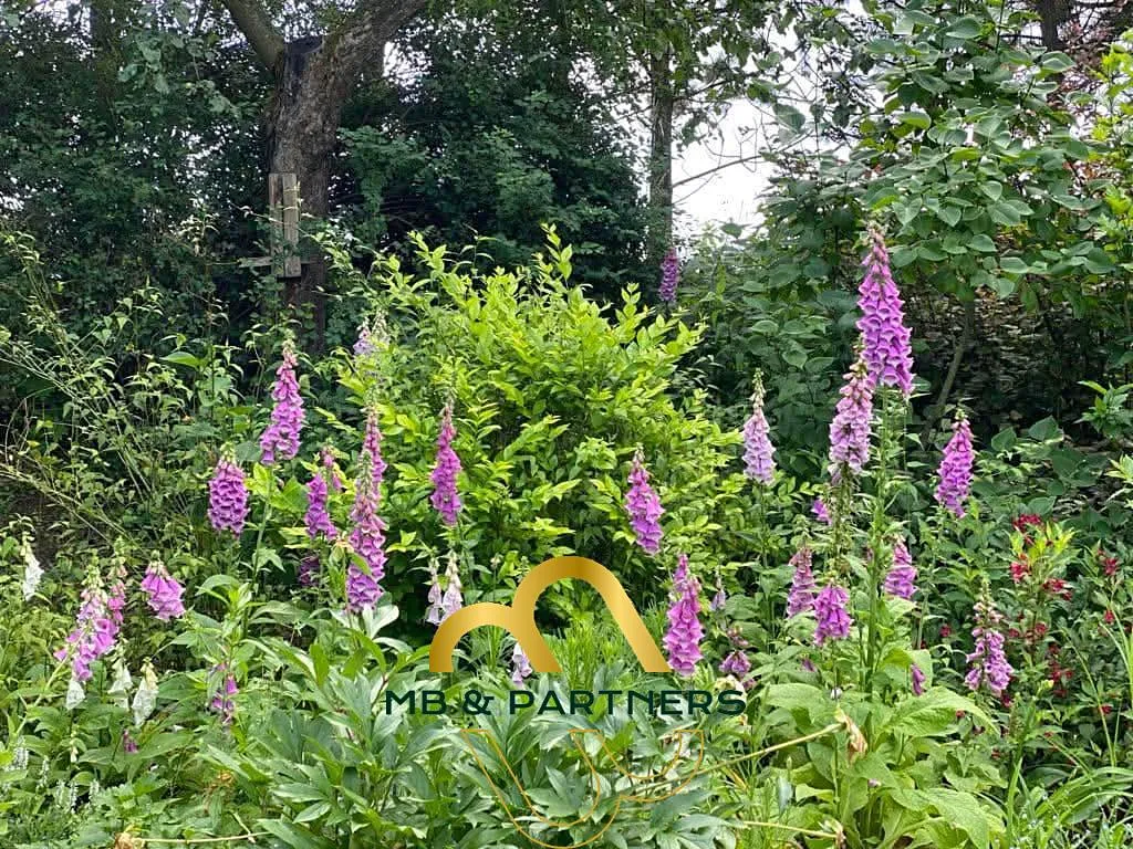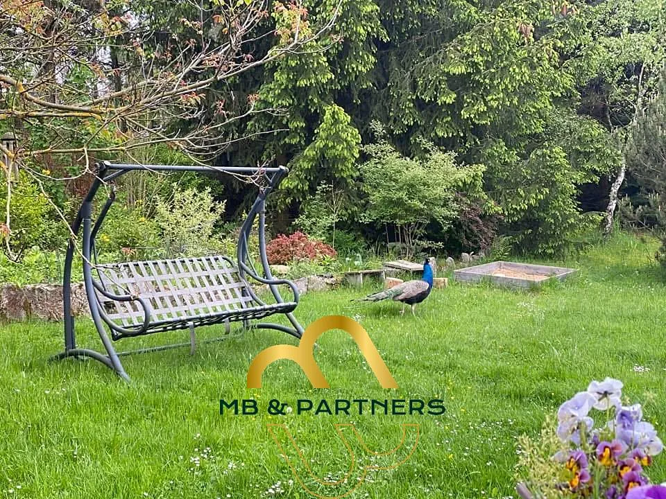 Rozlehlá okrasná zahrada s množstvím nových dřevin, vzrostlých původních stromů, skal, okrasných skalek, loukou, zahradním domkem a mnohými zákoutími vyžaduje jednoduchou údržbu a vzájemnou dohodu s majitelkou.