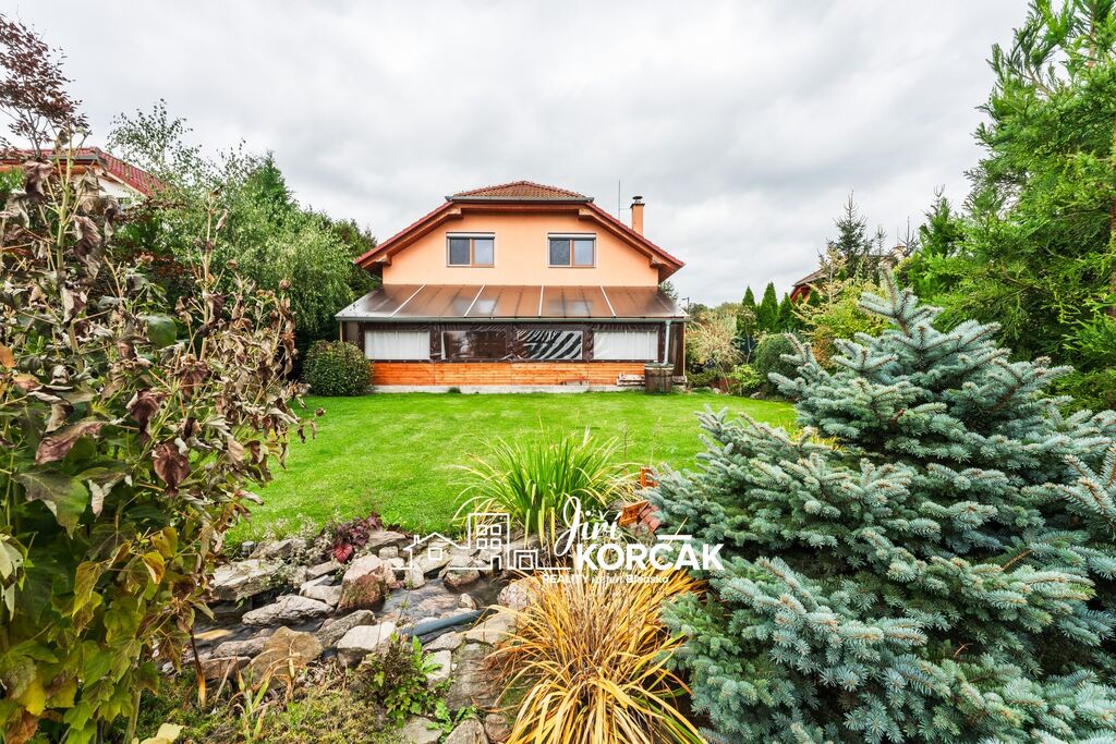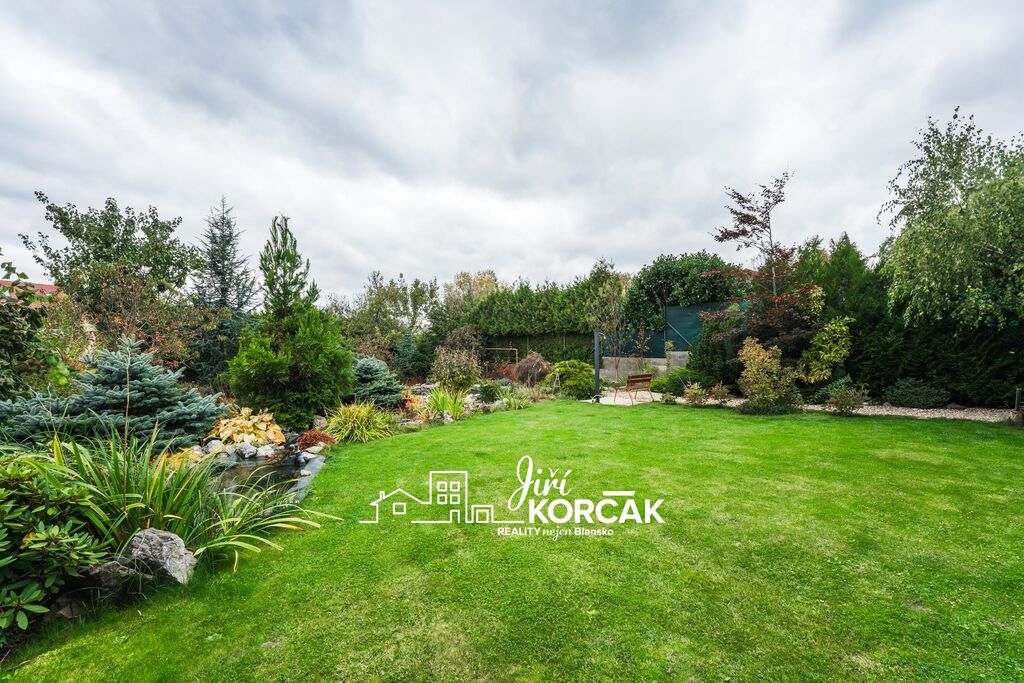 Zahrada potěší každého, kdo má rád klid a přírodu. Najdete zde jezírko o hloubce 1,6 m s přírodním čištěním vody, rozvody užitkové a dešťové vody, a dostatek prostoru pro odpočinek i praktické využití.