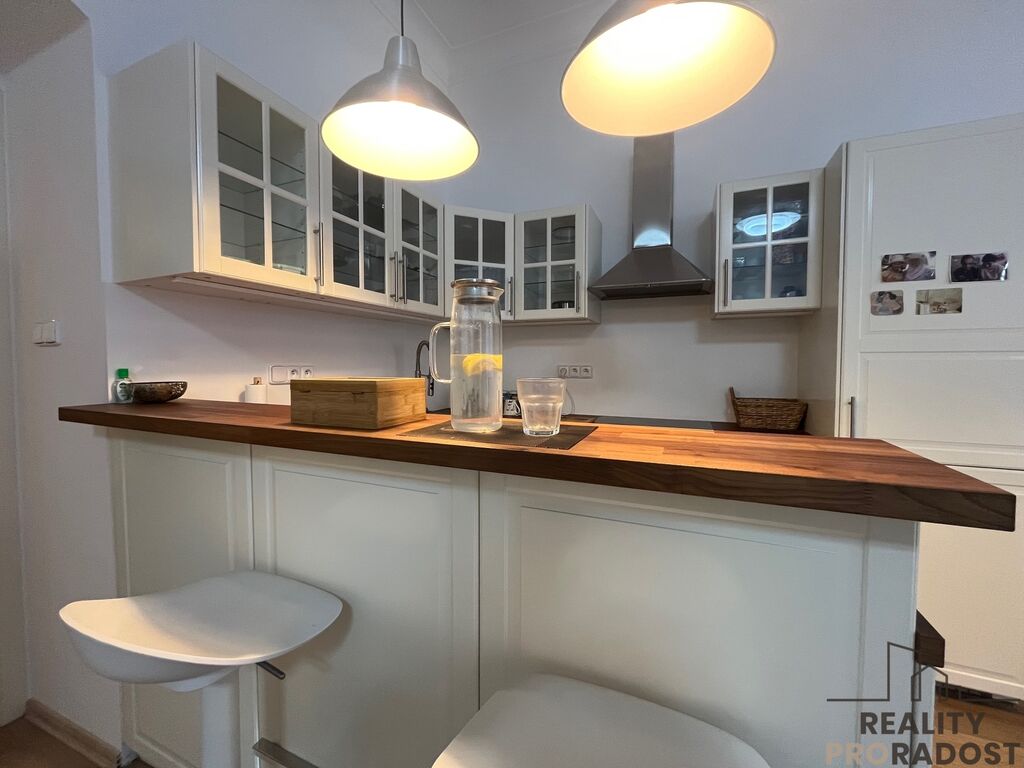 Prostorný a světlý byt po rekonstrukci v historickém citlivě zrekonstruovaném domě z roku 1899. Kuchyňský kout vybavený moderní kuchyňskou linkou se spotřebiči vybavenou sklokeramickou varnou deskou, troubou, myčkou a lednicí s mrazákem, ložnice s vybavená skříněmi a postelí. Koupelna se sprchovým koutem, samostatné WC. Podlahy plovoucí a dlažba. Špaletová okna do ulice (obývací pokoj a kuchyň), do zahrady eurookna (ložnice). Byt je orientován na jih a sever s výhledem do klidné ulice Řehořovy a do vnitrobloku se zelení. Dům s moderním výtahem a se zabezpečeným vstupem. Ke společnému užívání též zahrada ve vnitrobloku a vlastní terasa. Výborná dopravní dostupnost a občanská vybavenost. V docházkové vzdálenosti Riegrovy sady a park Vítkov, školy, školky, restaurace, obchody, metro, tramvaje, vlakové a autobusové nádraží, centrum. Mimořádné kulturní vyžití v místě a bohatý komunitní život.