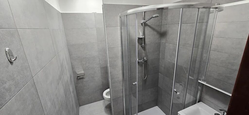 ✅ Koupelna se sprchovým koutem a velkoformátovým šedým obkladem