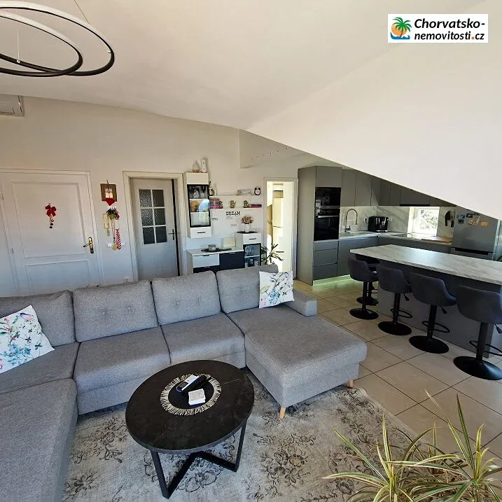 Třípokojový byt o rozloze 81 m2 je na prodej ve výjimečné lokalitě v Novalji, jen minutu od pláže, okres Gaj. Apartmán je klimatizovaný a zařízený.
