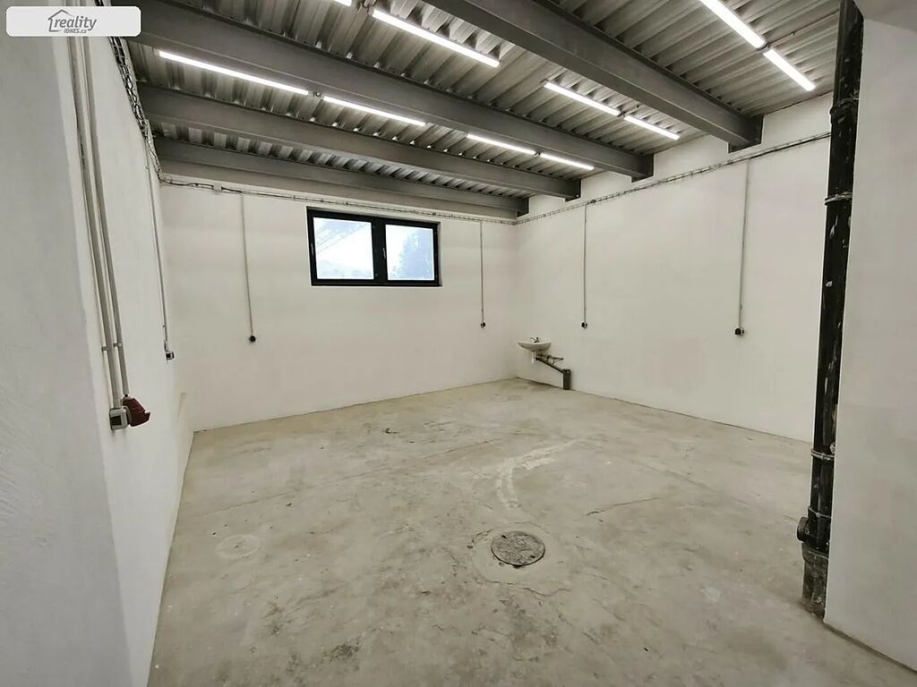 Vstup případně vjezd vraty 230x300cm v úrovni terénu. V prostoru je k dispozici rozvod el. energie 230V/400V, osvětlení a zásuvky, voda, odpad. Na zemi je beton. K dispozici sociální zařízení na patře budovy. Bez vytápění (možno nainstalovat).V budově je také dostupná neomezená kapacita přípojky k internetu (po dohodě s dodavatelem 3-tí strany).