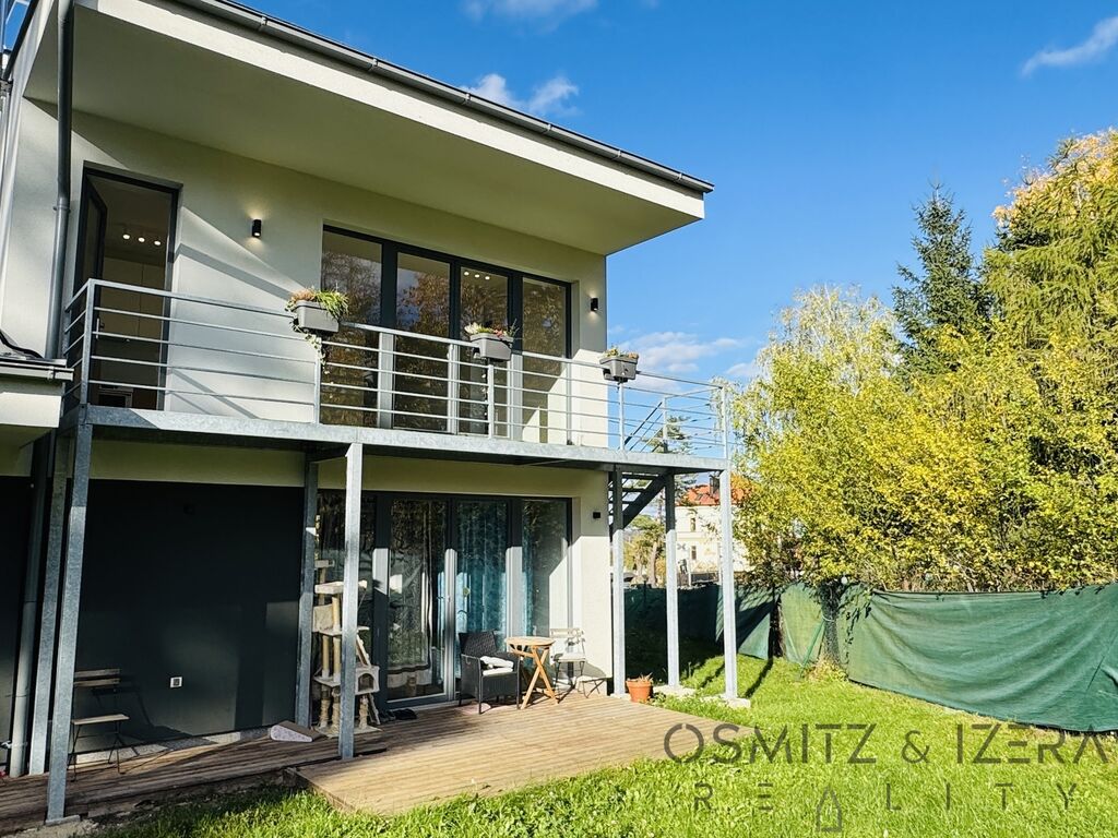 Novostavba domu se nachází ve velice klidné části Mníšku pod Brdy. Jen kousek od železniční stanice s přímým spojením na Prahu. Automobilem jste po dálnici D4 v centru Prahy za 20 minut. Nájemník si na sebe převádí elektřinu (cca 3 tisíc/měsíc podle užívání) a svoz komunálního odpadu (800 kč/rok). Další náklady v domě zahrnují již jen úpravnu vody z vlastní studny (300 kč/měsíc).