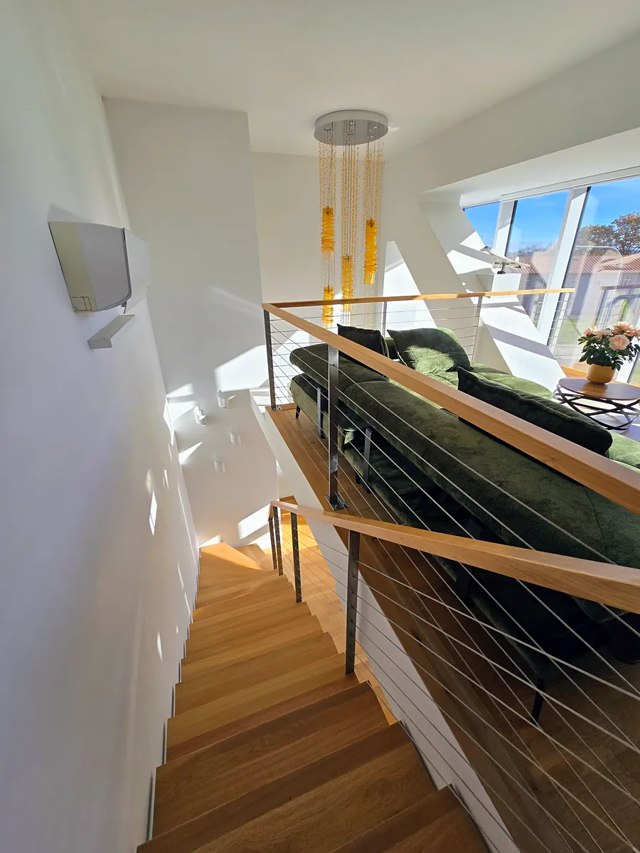 Exkluzivně nabízíme nádherný atypicky mezonetový byt o velikosti 143m2 s velkou terasou 35m2 který poskytuje úchvatné výhledy na panorama Prahy a je součástí exkluzivního projektu SACRE COEUR 2 v atraktivní klidné lokalitĕ Smíchova v bezprostřední blízkosti dvou parkú.V prvním patře bytu se nachází velký obývací prpstor s kuchyní, vstupem na velkou terasu a také je zde koupelna s toaletou.Do druhého patra bytu se dostanete dubovým schodištĕm a zde je pokoj formou galerie, kde se nachází rozkládací sofa, LED televize s velkou úhlopříčkou a tímto tvoří velmi dobrou odpočinkovou zónu.Dále se polračuje chodbou do ložnice, která má velkou samostatnou šatnu a je zde také vstup do koupelny s velkou vanou.Byt je vybavený luxusní kuchyňskou linkou s vestavĕnými spotřebiči AEG ( horkovzdušná trouba, indukční deska, mikrovlnná trouba, myčka nádobí atd). Dále vybaveno kompletnĕ nábytkem, velkou TV, pračkou, sušičkou, klimatizací, zahradním nábytkem včetnĕ vířivky.Podlahová krytina parkety a velkoformátové dlažby.Velmi luxusní zpracování a nadstandardní zřizovací předmĕty vysoké kvality.V rámci domu je recepce 24/7 a lobby.V cenĕ bytu je parkovací stání a sklep o velikosti 4 m2. Možnost financování hypotéčním úvĕrem, se kterým Vám rádi pomůžeme.
