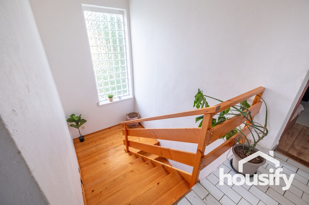 Dům má praktickou dispozici s dostatkem prostoru pro rodinné i vícegenerační bydlení. V prvním podlaží se nachází obývací pokoj, samostatná kuchyně s praktickou komorou, jeden pokoj a koupelna se samostanou toaletou. Po schodišti se dostanete do druhého podlaží, které vás uvítá chodbou vedoucí do dalších tří obytných pokojů, druhé koupelny a toalety. Z chodby je přístup na půdu.
