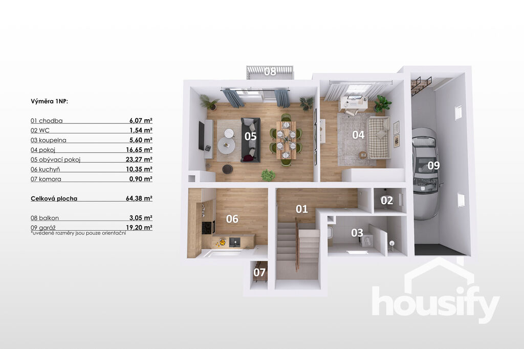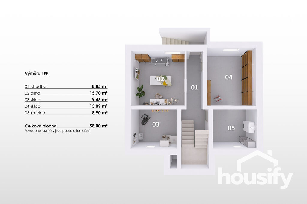 Dům je celý podsklepený, což poskytuje další místo pro skladování, dílnu nebo koníčky. Parkování je možné v garáži nebo přímo před domem. Menší zahrada za domem je kompletně krytá a vytváří příjemné místo pro odpočinek i drobné zahradničení.