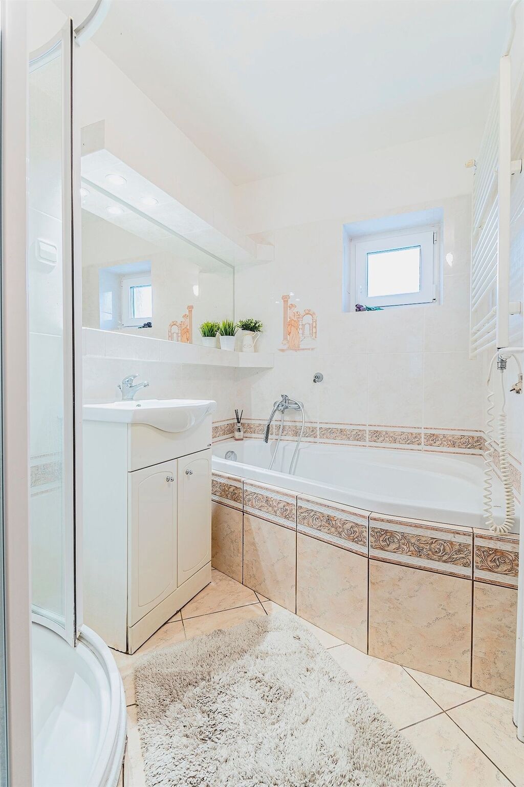 Tento zděný dům byl dispozičně koncipován jako dvougenerační, kdy v každém ze dvou (2) nadzemních podlaží se nachází byt s dispozicí 2+1, nicméně dům byl doposud využíván pro jednogenereční bydlení s dispozicí 5+1. Dům stojí na vlastním oploceném pozemku, kolem dokola jej obklopuje zahrada a funkční zpevněné plochy. Zde najdeme příjemné záležitosti, jako např. polozapuštěný oválný bazén, velmi pěkné kryté posezení pod zastřešenou pergolou (má zavedenou elektřinu i vlastní sklepení), dále vymezený prostor v rohu pozemku pro případné zbudování samostatné další garáže.
