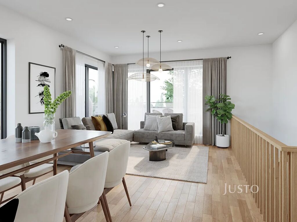 2. nadzemní podlaží je tvořeno prostorným obývacím pokojem s kuchyňským koutem a toaletou