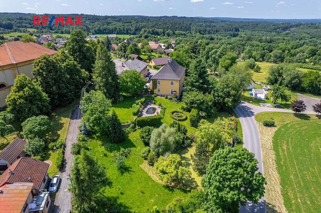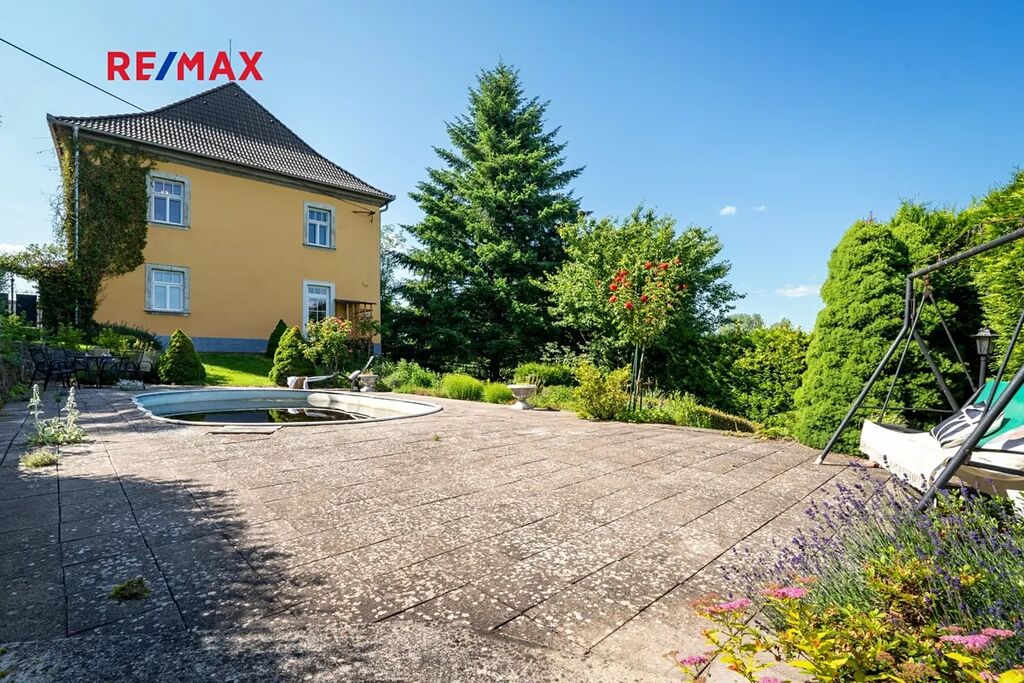 Součástí nemovitosti je členitá zahrada s vzrostlými dřevinami, ovocnými stromy a okrasnými záhony. V zahradě se nachází rybníček, bazén, posezení s výhledem do zeleně i intimní zákoutí vhodná pro klid a relaxaci. Prostor nabízí dostatek místa pro volnočasové aktivity i zahradničení.