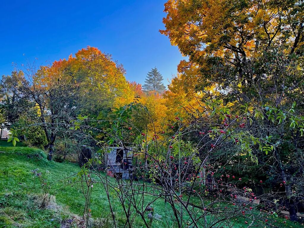 Pozemek disponuje krásnou vzrostlou zahradou, okrasné keře a vysoké stromy, ovocné stromy, kanadské borůvky, jabloně, švestky a mnoho dalšího.