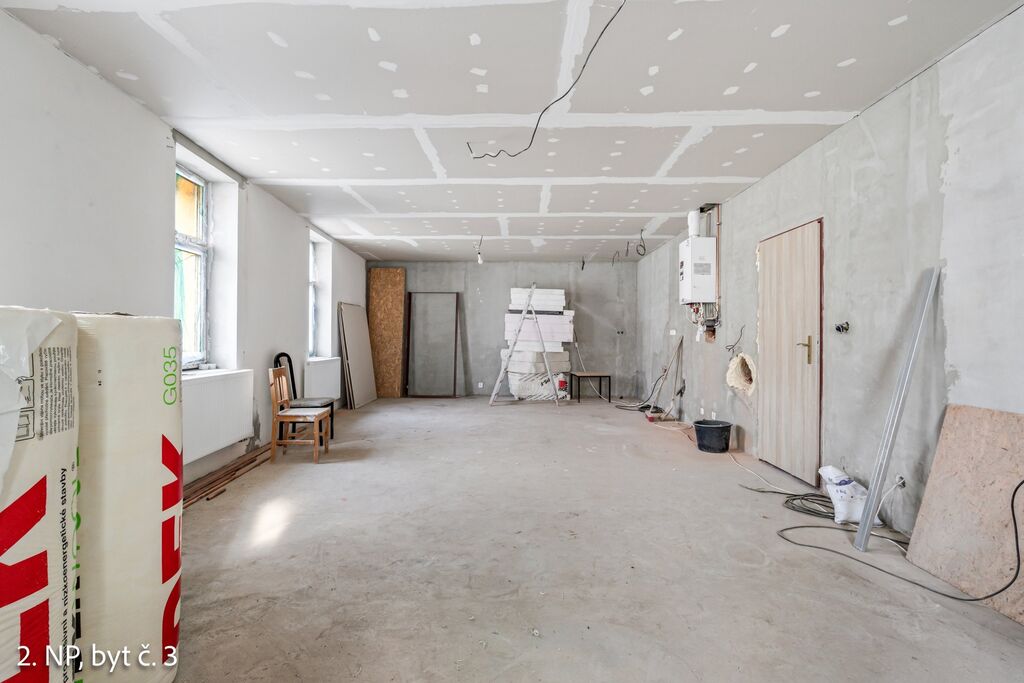Čtyři byty tak čekají na dokončení – ideální příležitost pro investici nebo vytvoření vícegeneračního bydlení v klidném a krásném prostředí Oseku.