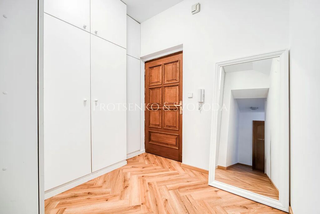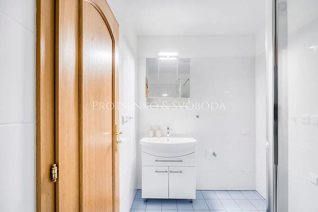 Interiér je navržen s důrazem na komfort a funkčnost. Díky plně vybavené kuchyni s myčkou a lednicí je prostor ideální nejen pro běžný provoz, ale i pro menší setkání. Praktická velká vestavěná šatní skříň poskytuje dostatek úložného místa a udržuje kancelář dokonale reprezentativní. K dispozici jsou také dva samostatné záchody a koupelna, což zajišťuje pohodlí pro tým i návštěvy. Celkovou atmosféru dotváří kvalitní dřevěné podlahy, které prostoru dodávají hřejivost a eleganci.