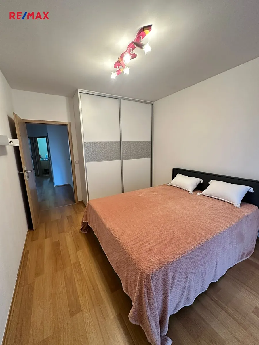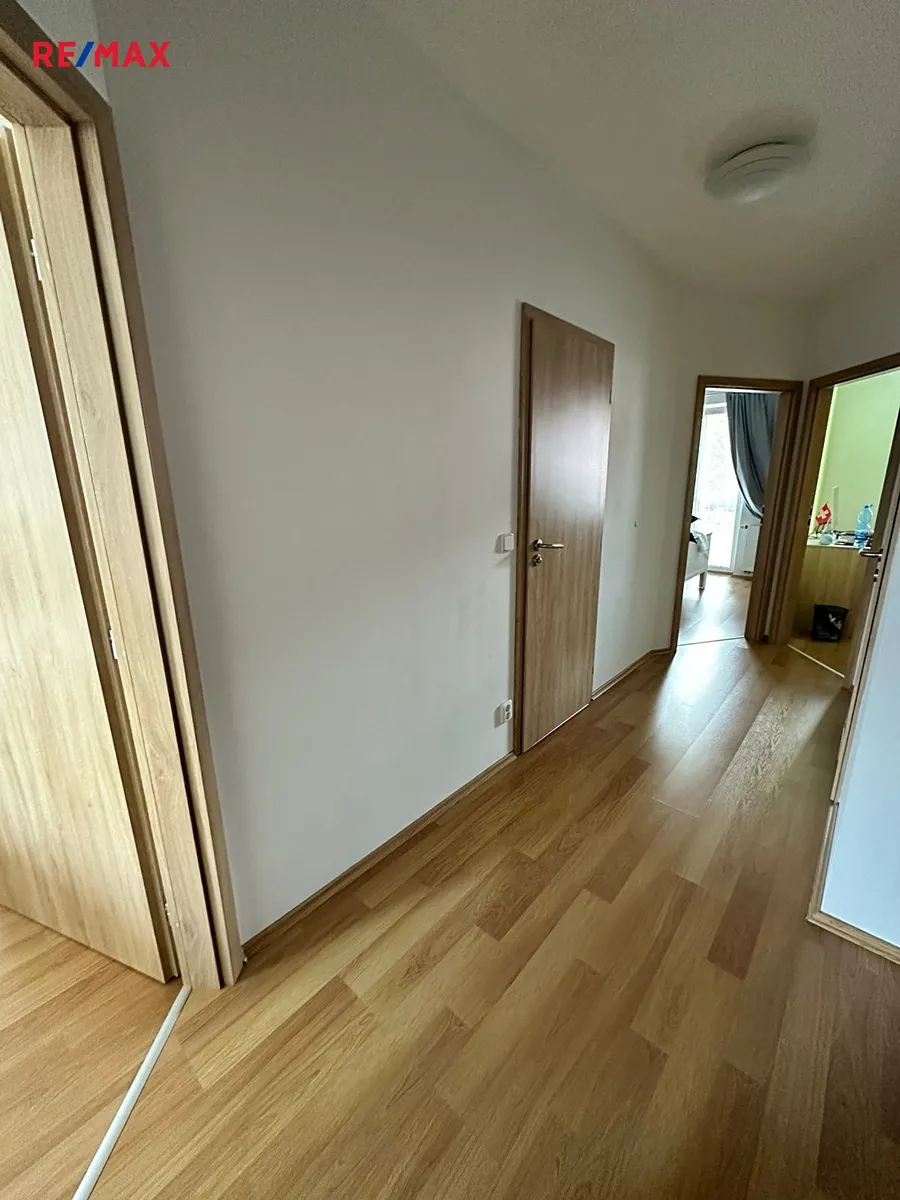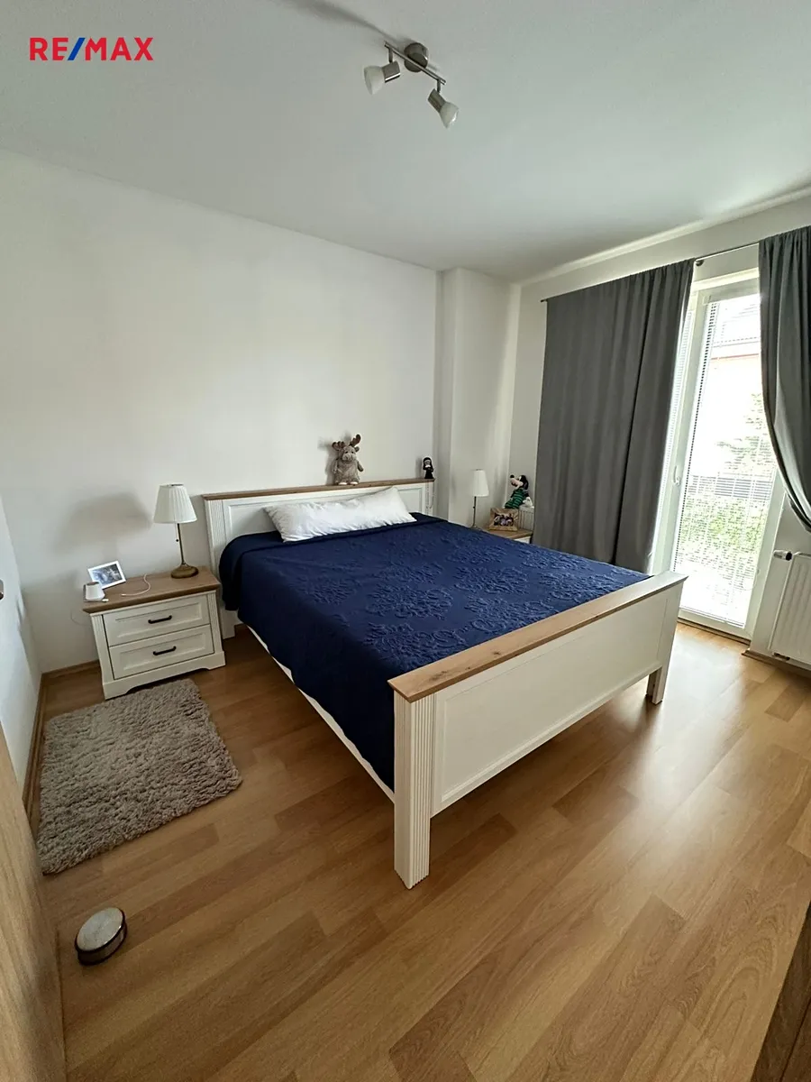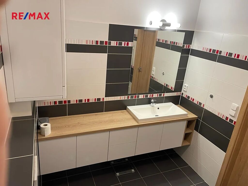 V přízemí domu se nachází prostorný obývací pokoj s kuchyňským koutem a moderní kuchyňskou linkou s  vestavěnými spotřebiči, dále toaleta s umyvadlem, šatna, prádelna a garáž pro jeden osobní automobil. V patře jsou k dispozici čtyři pokoje, šatna a koupelna s vanou a toaletou. Šatna v přízemí a šatna v patře jsou vybaveny vestavěnými skříněmi, stejně jako dva pokoje v patře. Jeden z pokojů v patře lze využívat také jako pracovnu, je zde k dispozici knihovna. V obývacím pokoji  je rozkládací sedací souprava a nábytková obývací stěna (jídelní stůl a židle v obývacím pokoji uvedené na fotografii nejsou aktuálně k dispozici, nicméně stávající nájemce může nabídnout prakticky nový další nábytek - jídelní stůl, postele v pokojích, atd.). Majitel domu neuvažuje o demontáži stávajícího vestavěného nábytku na míru.