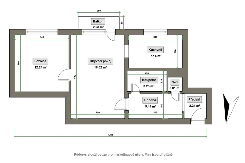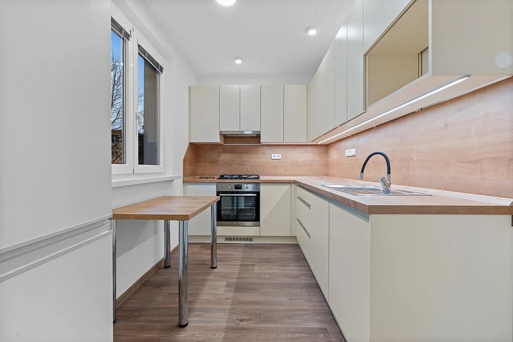 Obytná plocha bytu je cca 50m² s balkonem a se sklepem. Byt není zařízený nábytkem, má jen základní zařizovací předměty (tj., kuchyňská linka, myčka, digestoř, varná deska a trouba, sanitární zařízení).