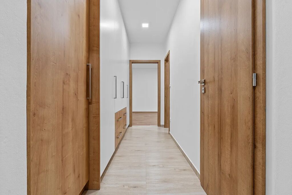 V bytě je prostorná vstupní chodba a vestavěné skříně na míru. Byt je ideálním bydlením pro rodinu.