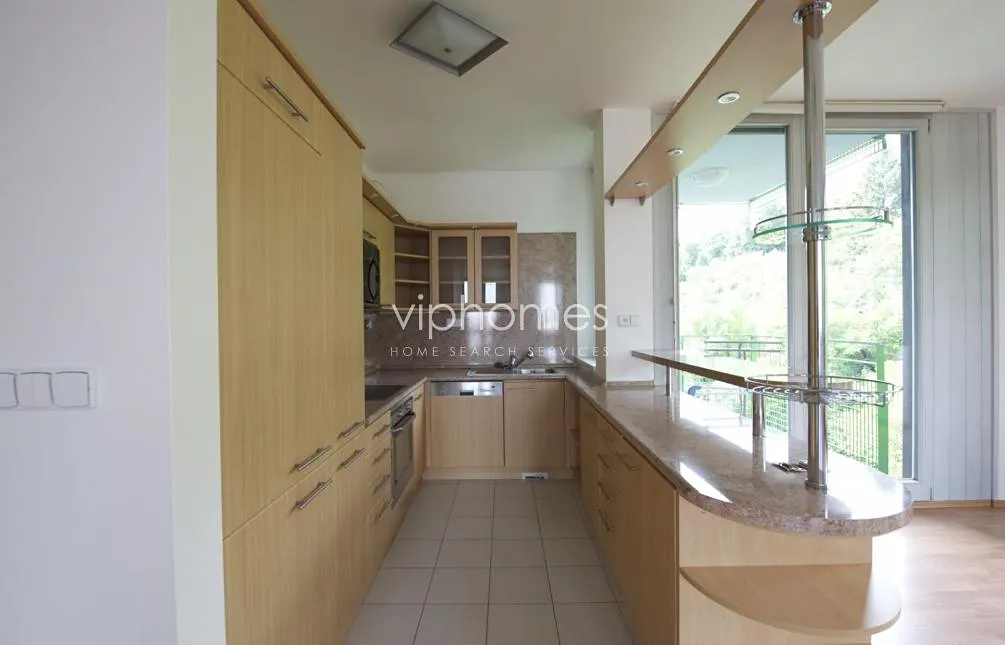 Dominantou bytu je otevřený obývací pokoj s plně vybavenou kuchyní, jídelnou, velkorysý obytný prostor dále nabízí 4 ložnice, 2 koupelny, prádelnu a vstupní halu. Výhodou jsou 3 balkony s výhledem do zeleně, centrální vysavač, alarm, UPC. Bezpečné parkování v podzemní garáži, sklep.