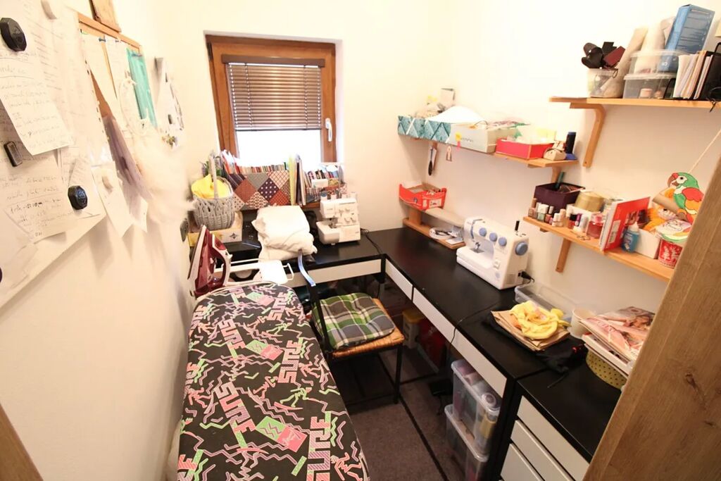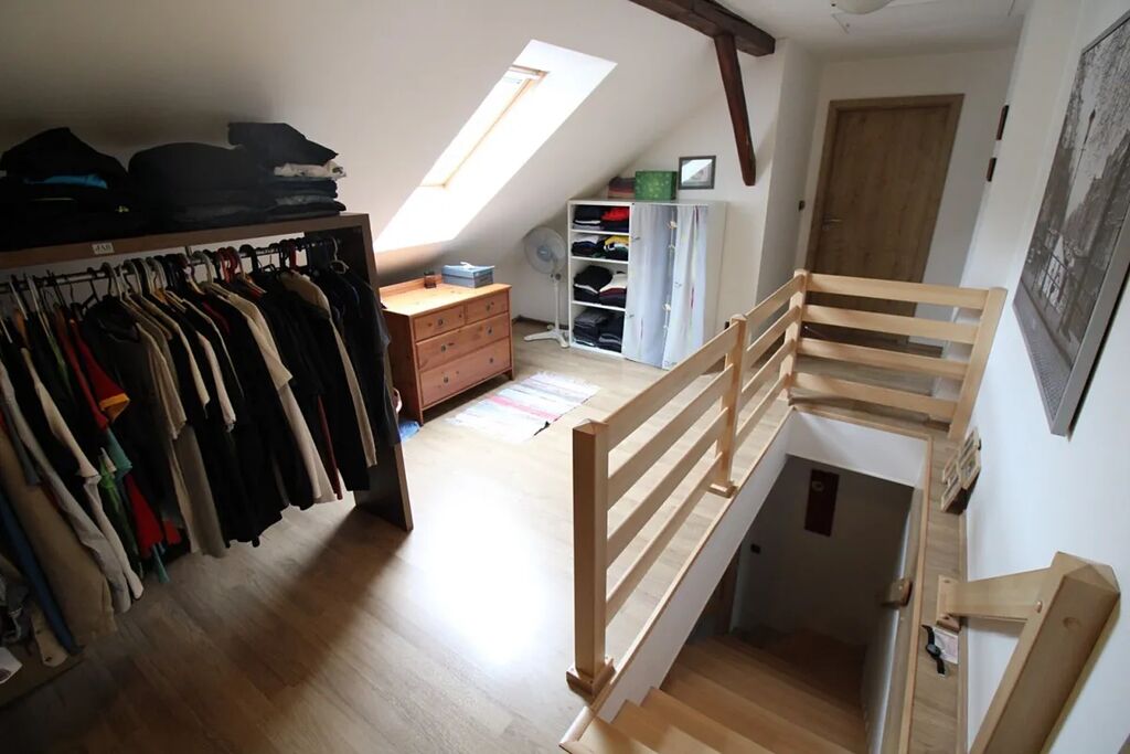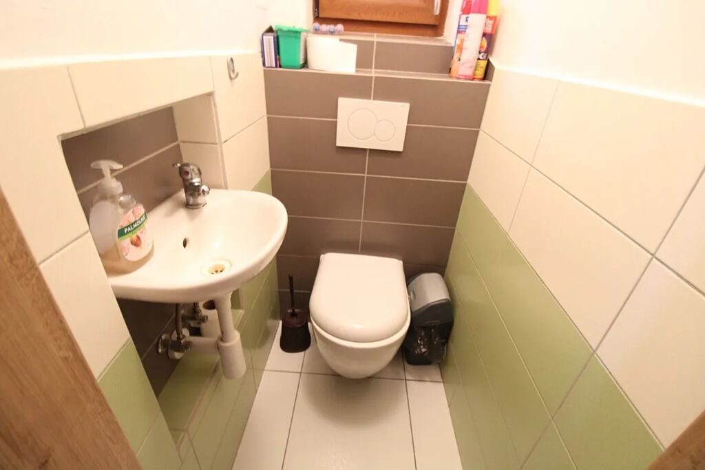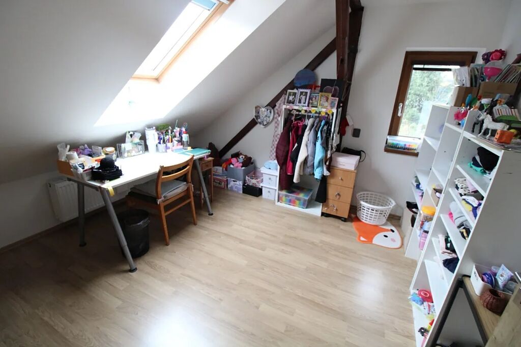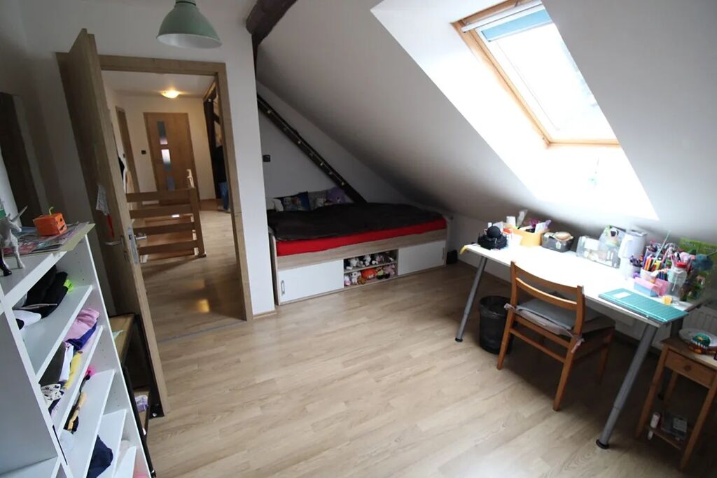 Dále je zde pracovna (nebo menší pokoj pro hosty), koupelna, samostatné WC a zádveří.