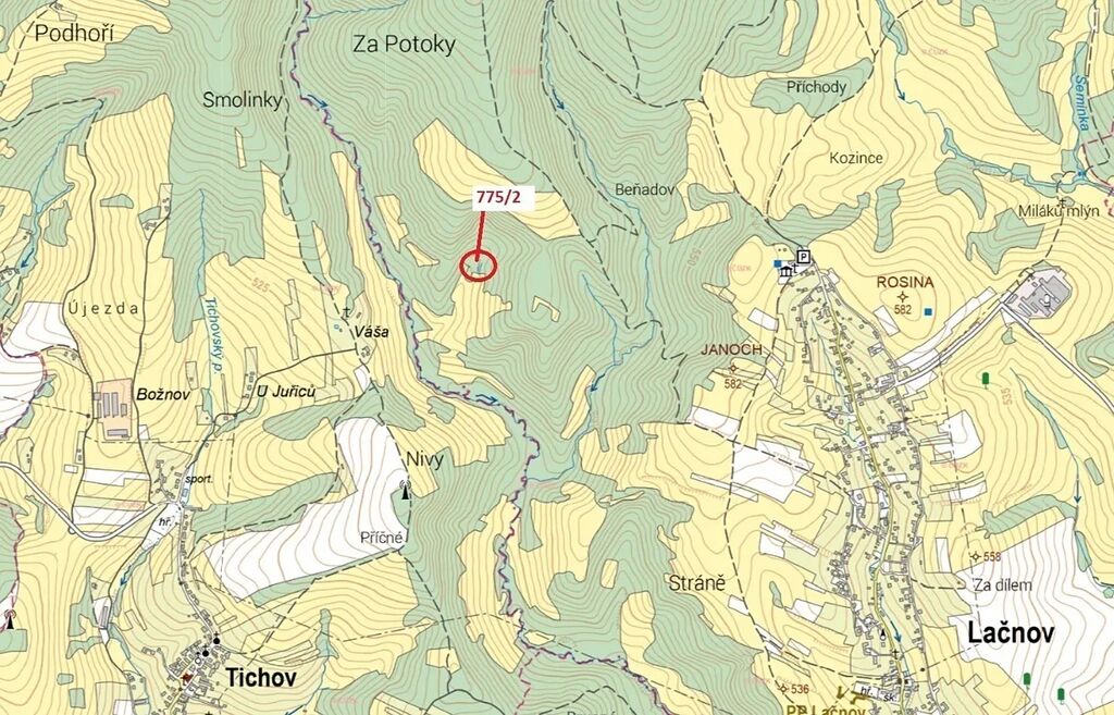 Lesní pozemek o výměře 281 m2, parcelní číslo 775/2, podíl 1/1, katastrální území Lačnov, obec Lačnov, obec s rozšířenou působností Vsetín, okres Vsetín, Zlínský kraj.