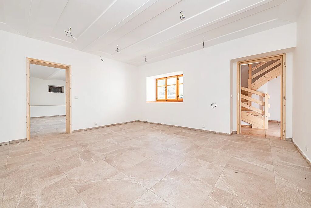 2 NP – dva dokončené samostatné pokoje (2 m2, 40 m2), ve kterých zabývá položit pouze finální povrch podlah, samostatná kuchyňka (6 m2) a koupelna s toaletou, a další prostor ve fázi přípravy (příprava pro další pokoje 13 m2, 44 m2), druhou samostatnou kuchyňku, a dvě samostatné koupelny. Celkem 2NP i s příslušenstvím 175 m2 obytné plochy. Nedokončená část umožňuje případné dispoziční změny dle nového majitele (více pokojů nebo naopak vytvoření většího společného prostoru se vstupem přímo do svahu na zahradu).