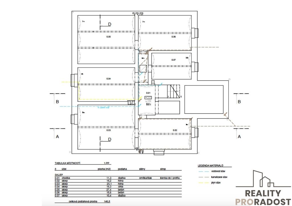 Podlahová plocha celkem: 376,2 m2, sklepy celkem 128m2, kóje různých velikostí.