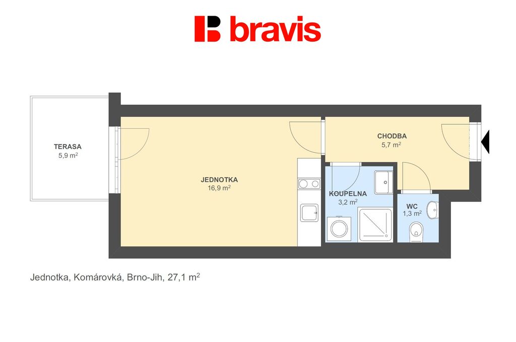 Pronájem bytu 1+kk, Brno - Komárov, Komárovská, 28 m2 (ID: 1876813)