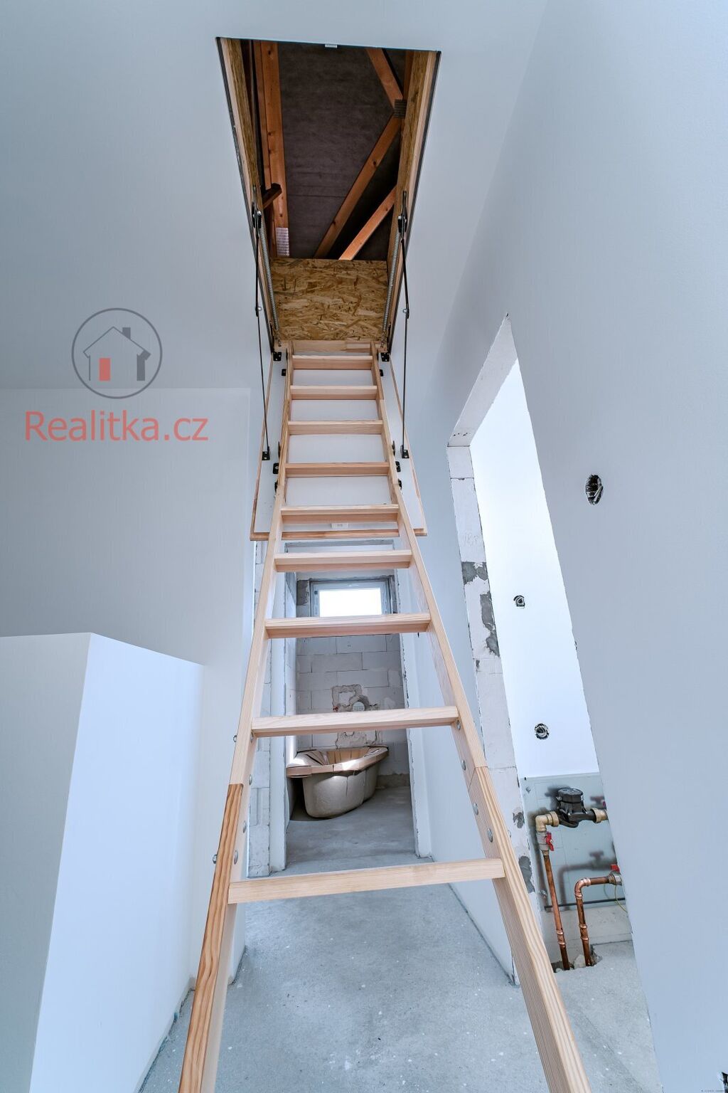 •	Přízemí: Přivítá vás prostorná chodba, technická místnost, elegantní WC s geberitem, útulný pokoj, praktická komora pod schody a moderní kuchyň spojená s obývacím pokojem, odkud je vstup na terasu.