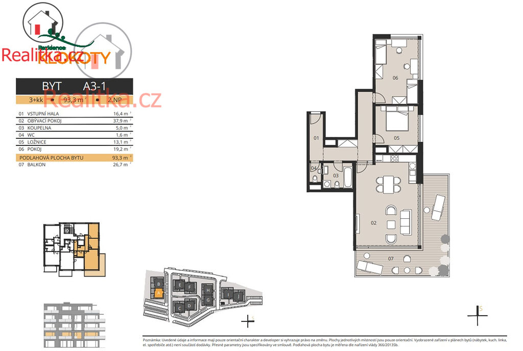 V exkluzivním projektu Rezidence Klokoty nabízíme byt A3-1, nacházejícím se v 2. NP o dispozici 3+kk o výměře 93,3 m2 a terasou 26,7 m2. Byt je tvořen vstupní halou, obývacím pokojem, koupelnou, WC, komorou, ložnicí, chodbou a pokojem. Další byty 3kk v nabídce na webu projektu Rezidence Klokoty.