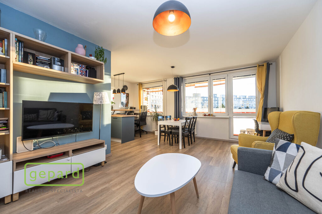Byt zaujme promyšlenou dispozicí i příjemnou atmosférou. Dominantou je velký obývací pokoj s kuchyňským koutem (31 m²), (kuchyň Oresi Livanza z roku 2020)  a přímým vstupem na slunnou lodžii s výhledem do zeleně, ideální pro ranní kávu či odpočinek po práci.