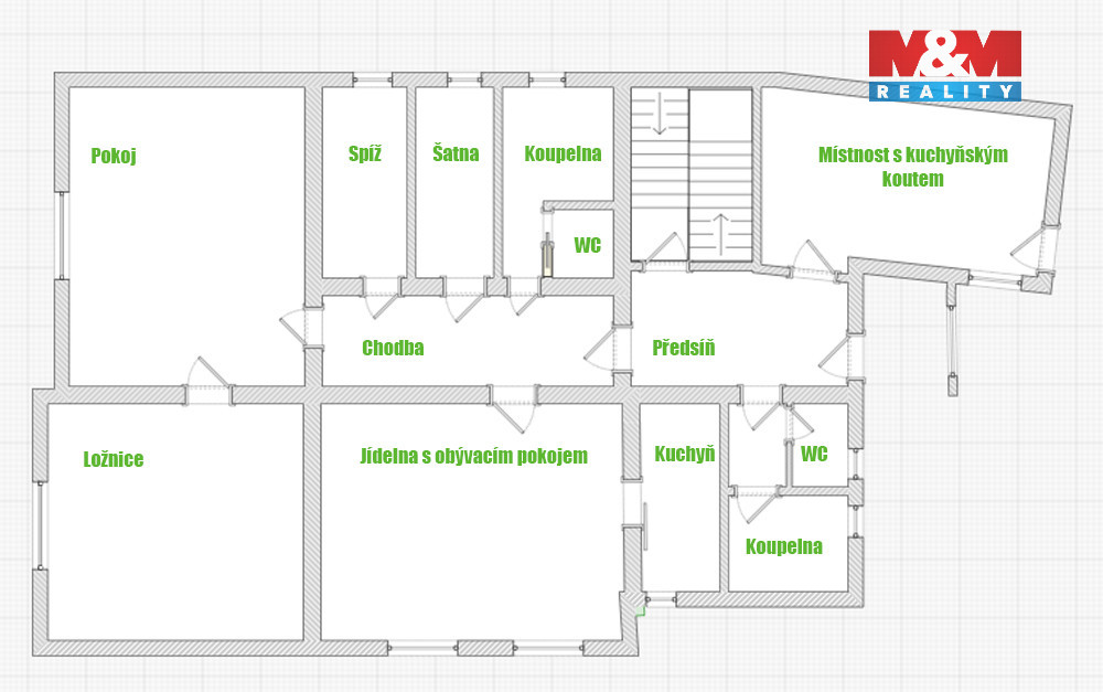 Užitnou plochu je možno rozšířit rekonstrukcí plně pochozí rozlehlé půdy, která je přístupná po vybudovaném schodišti.