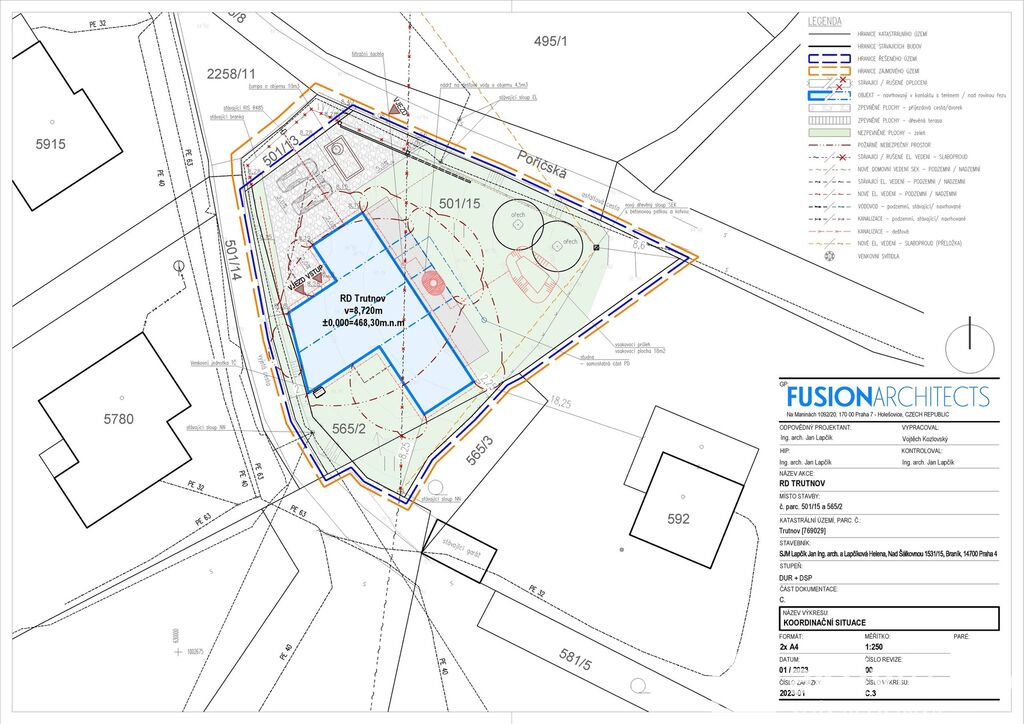 V Trutnově, v klidné a vyhledávané části Na Dvoračkách, nabízíme ke koupi stavební pozemek o výměře 953 m² se schváleným projektem moderního rodinného domu a platným stavebním povolením (včetně samostatného povolení na vrtanou studnu).