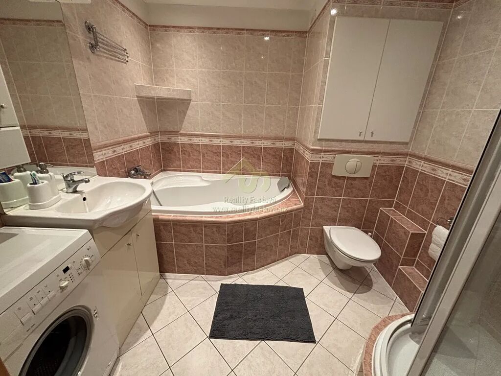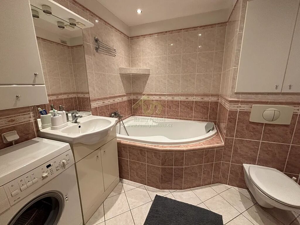 Byt má zděné jádro s prostornou koupelnou, ve které je osazena vana i sprchový kout, umyvadlo, toaleta, pračka a koupelnový nábytek. I druhé WC je komplet po rekonstrukci.