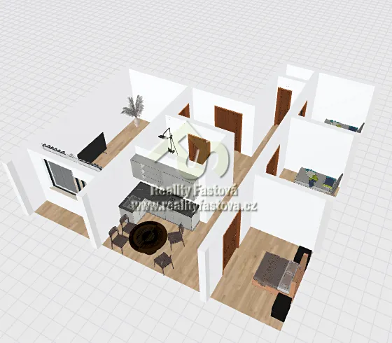 Byt má všechny pokoje samostatné, neprůchozí. Z velkého obývacího pokoje je výstup na lodžii.