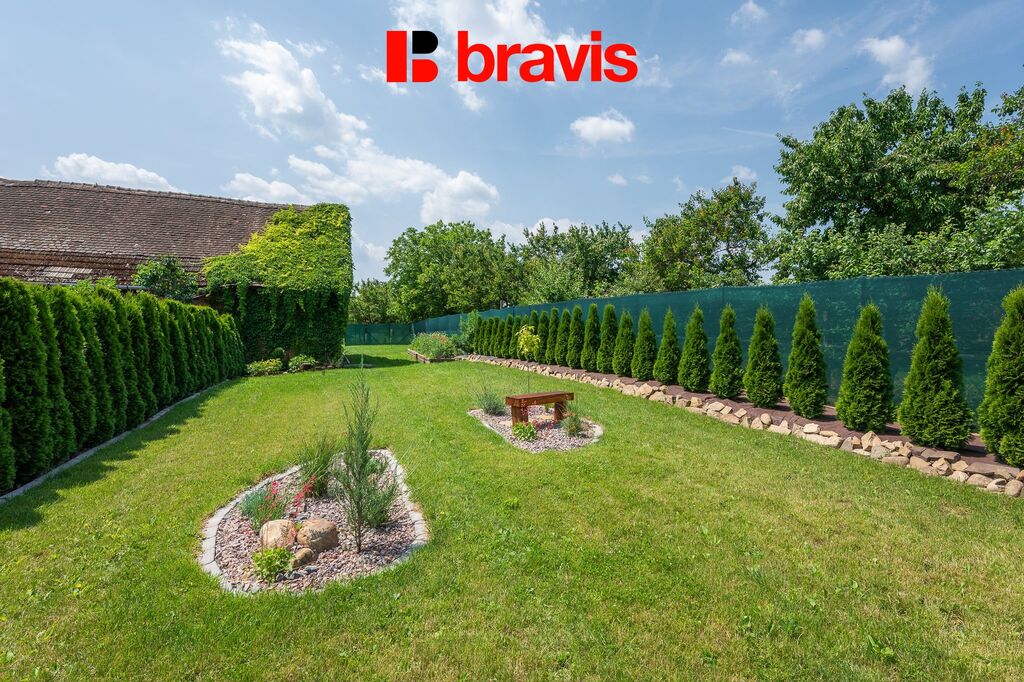 Součástí prodeje je pečlivě upravená, částečně vzrostlá zahrada a ovocný sad, jenž společně nabízejí dostatek soukromí i prostoru pro dětské hry, zahradničení nebo chov domácích zvířat.  V zahradě je meruňkový sad a v dolní části obdělávané pole. Pozemek je ideální pro milovníky přírody i všechny, kdo touží po vlastním kousku zeleně.