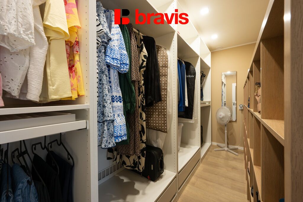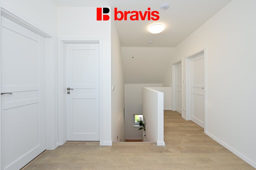 Dům s celkovou užitnou plochou 235 m²  nabízí promyšlené rozložení místností: v přízemí se nachází samostatná kuchyně, prostorný obývací pokoj a ložnice, na níž navazuje šatna s koupelnou a sprchovým koutem. V prvním patře naleznete tři velké pokoje a druhou koupelnu s vanou. Tento dům je ideální pro větší rodinu i pro ty, kdo ocení dostatek prostoru pro práci z domova, relaxaci i společné chvíle.