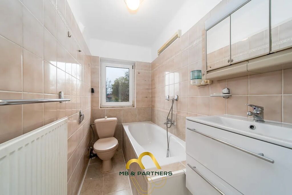 Na chodbě je velká hluboká skříň, koupelna s vanou a WC, kuchyň s oddělenou, ale průchozí jídelnou. Kuchyňská linka vybavena spotřebiči -el.sporák s troubou, myčkou a lednicí. Starší klimatizace.